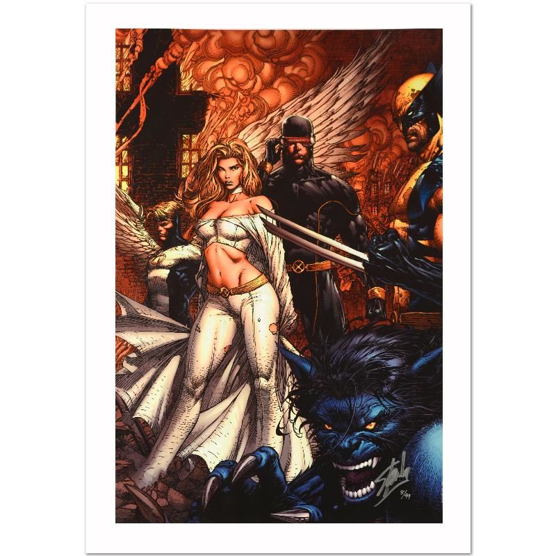 A piece of comic book history, this limited edition, from original art by David Finch, depicts several classic characters from the Marvel Universe. In 2003, Finch came to Marvel Comics for a year-long story arc on Ultimate X-Men. Afterwards, he began work on The Avengers, and later, The New Avengers. He has also worked on such titles as Captain America, Spider-Man and the Hulk. "Uncanny X-Men #494" is a numbered limited edition giclee on canvas by David Finch, presented by Marvel Comics and hand signed by the great Stan Lee! Includes Certificate of Authenticity! Measures approx. 18" x 27" (image).