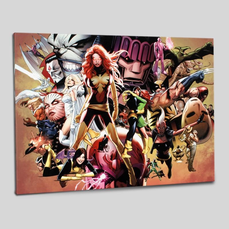 A piece of comic book history, this limited edition, from original art by Greg Land, depicts classic Marvel characters. Greg Land entered the comic industry in the 90s as a comic book penciler. Currently, he's best known for X-Men: Phoenix-Endsong, Ultimate Fantastic Four as well as a variety of cover art. "Uncanny X-Men #544" is a limited edition giclee on canvas by Greg Land presented by Marvel Comics! This piece comes gallery wrapped. Includes Certificate of Authenticity! Measures approx. 24" x 18" (image).