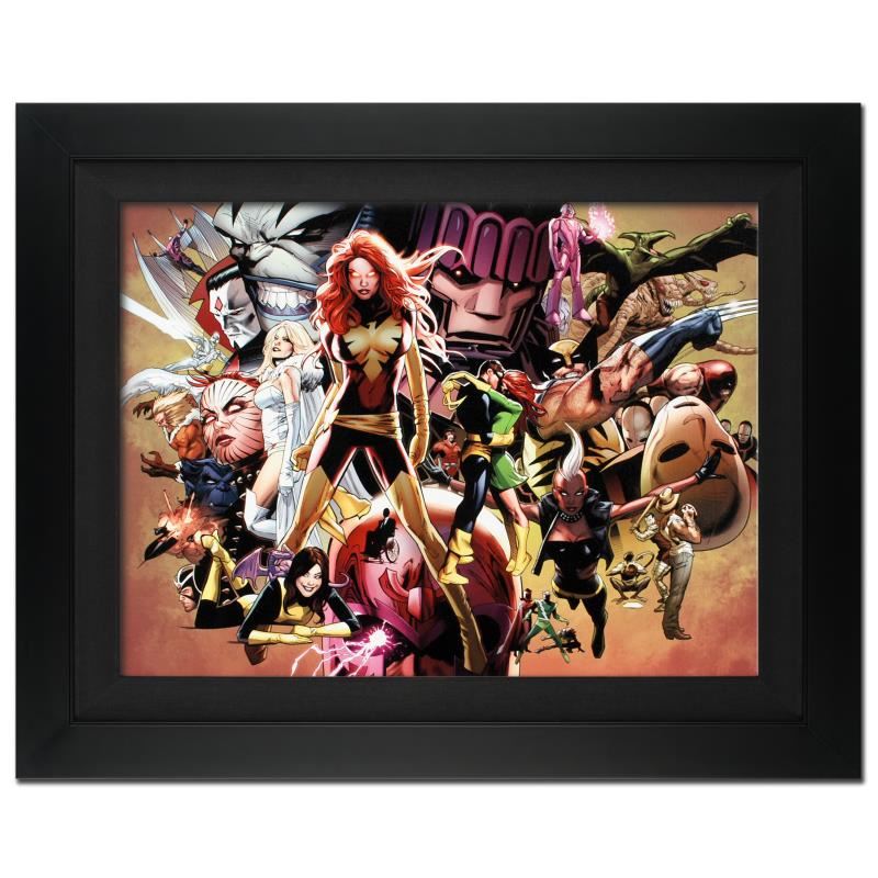 A piece of comic book history, this limited edition, from original art by Greg Land, depicts classic Marvel characters. Greg Land entered the comic industry in the 90s as a comic book penciler. Currently, he's best known for X-Men: Phoenix-Endsong, Ultimate Fantastic Four as well as a variety of cover art. "Uncanny X-Men #544" is an extremely limited edition giclee on canvas by Greg Land presented by Marvel Comics, hand signed by the great Stan Lee and numbered out of only 10! This piece comes custom framed and ready to hang. Includes Certificate of Authenticity! Measures approx. 31" x 25" (with frame), 24" x 18" (image).