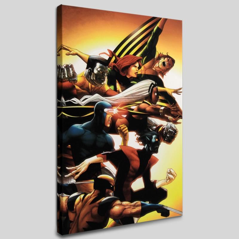 A piece of comic book history, this limited edition print, drawn by Roger Cruz, depicts Wolverine, Nightcrawler, Cyclops, Storm, Colossus, Phoenix and Banshee. Cruz started his professional career as a letterer for a Brazilian publishing house, and then worked as a writer and art assistant for a short-lived black and white comics magazine. When Art & Comics Studio first introduced Brazilian artists to the American comic book market, he was given the opportunity to work as an artist for Marvel Comics on the titles Ghost Rider, Hulk, X-Men Avengers: Timeslide and Silver Surfer. "Uncanny X-Men: First Class #5" is a numbered limited edition giclee on canvas by Roger Cruz presented by Marvel Comics. Includes Certificate of Authenticity! This piece is gallery wrapped. Measure approx. 18" x 27" (image); 1.5" (depth).