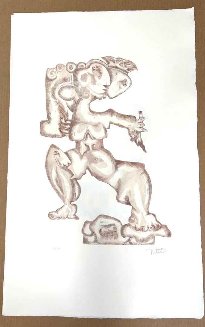 A Nechita figurative etching in muted brown & green ink on rag paper. Paper 34x21" Image and size abstracted. AP6/7.