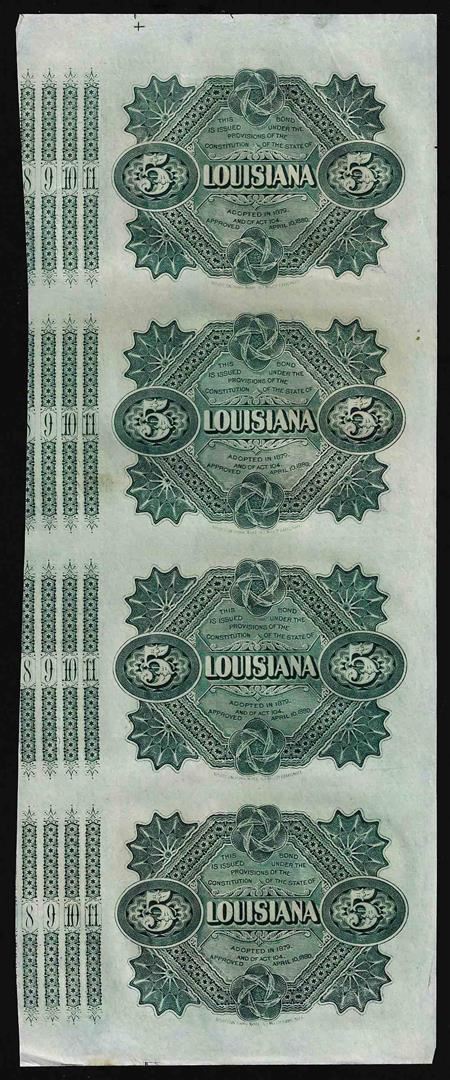 One Uncut Sheet of (4) State of Louisiana Baby Bond Obsolete Notes.