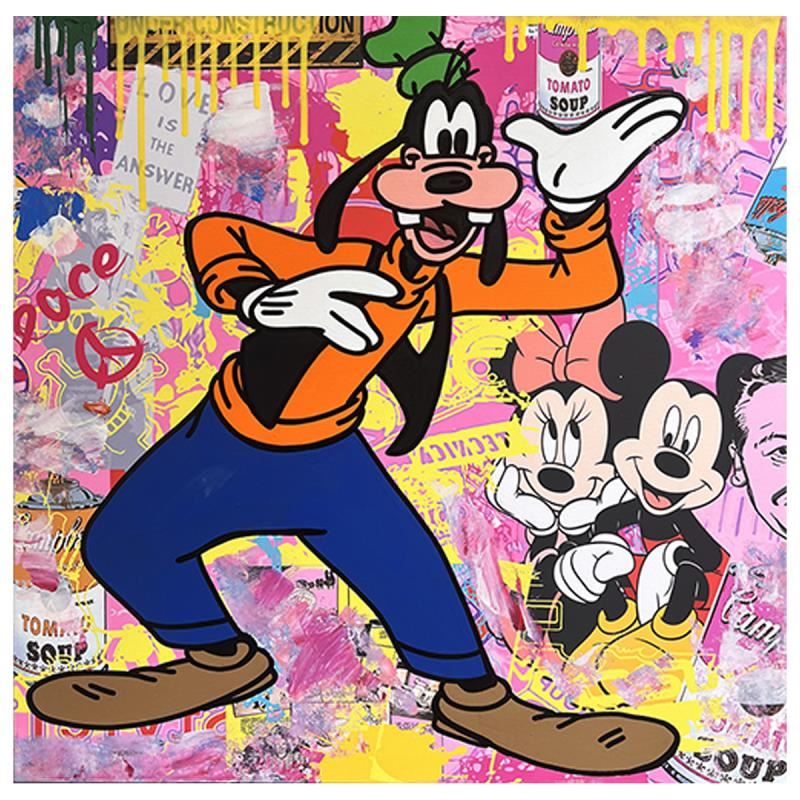 "Under Construction" is a unique mixed media acrylic on gallery wrapped canvas by Jozza. Hand Signed by the artist and titled in verso, the piece comes with a letter of authenticity. Measures approximately 30" x 30" (image).