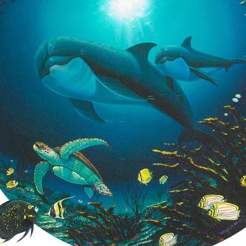 Wyland's boundless love of nature is clearly conveyed in each of his works with exacting detail. "Undersea Life" is a limited edition giclee on canvas, numbered and hand signed by Wyland! Includes Certificate of Authenticity! Measures approx. 24" x 24" (image).