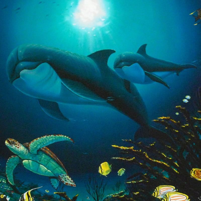 Wyland's boundless love of nature is clearly conveyed in each of his works with exacting detail. "Undersea Life" is a limited edition giclee on canvas, numbered and hand signed by Wyland! Includes Certificate of Authenticity! Measures approx. 24" x 24" (image).