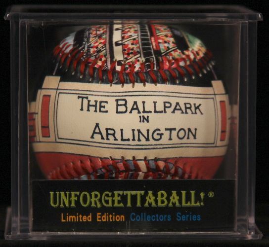 Unforgettaball! "Ball Park in Arlington" Collectable Baseball. Unforgettaball! "Ball Park in Arlington" Limited Edition Collector's Series hand-designed baseball.