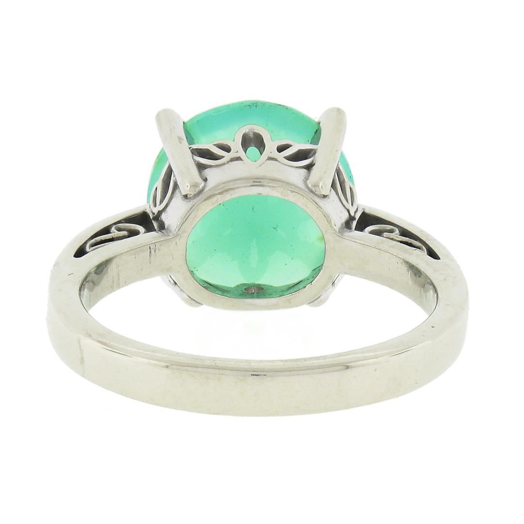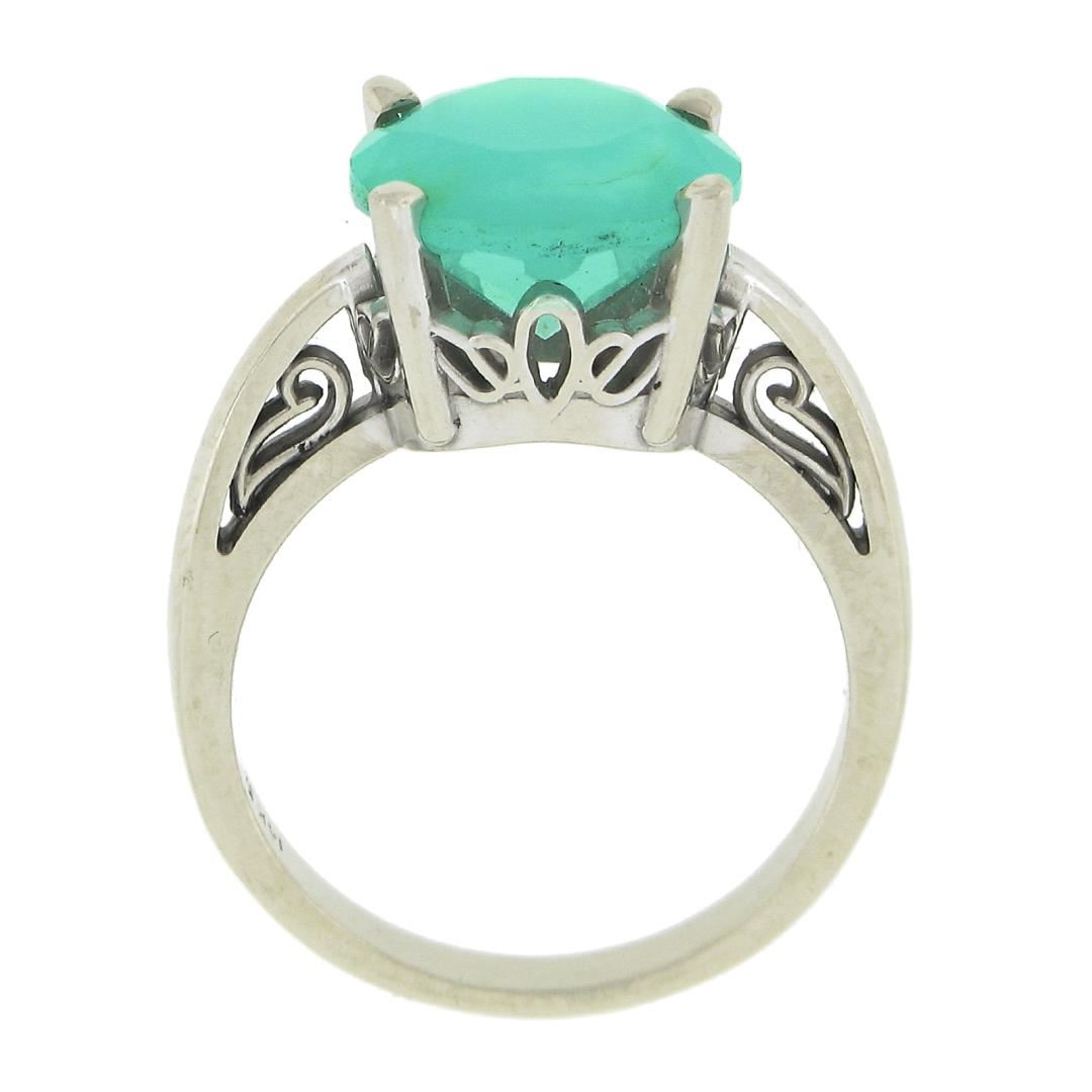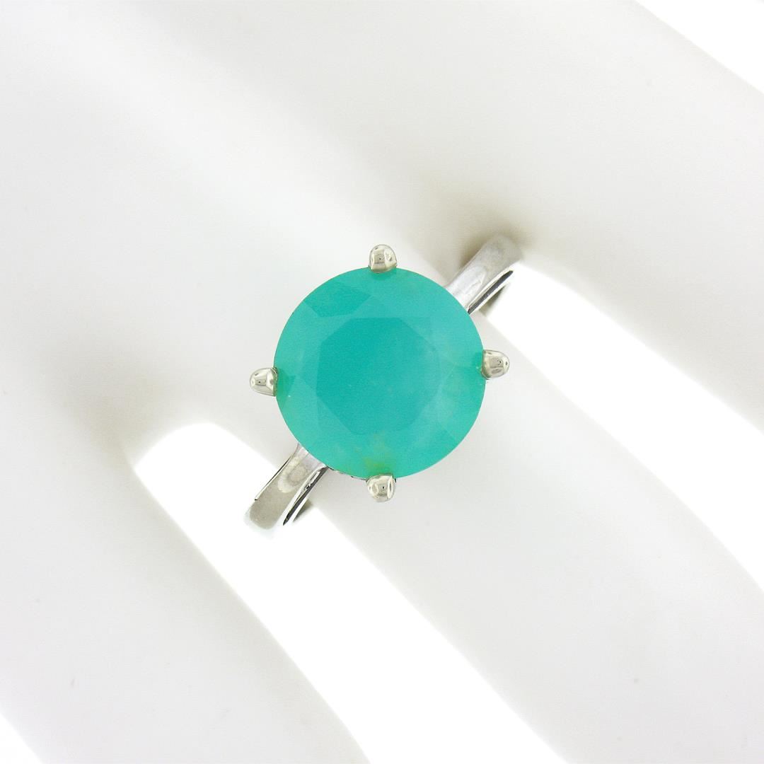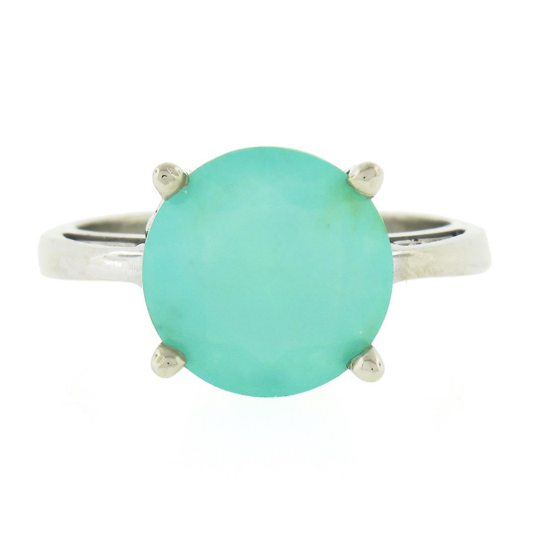 A solid 14k white gold solitaire ring, with 1 round cut natural Peruvian opal (10.8mm ). The ring is size 7.0, weighs a total of 4.85 grams, and measures 10.8mm wide.