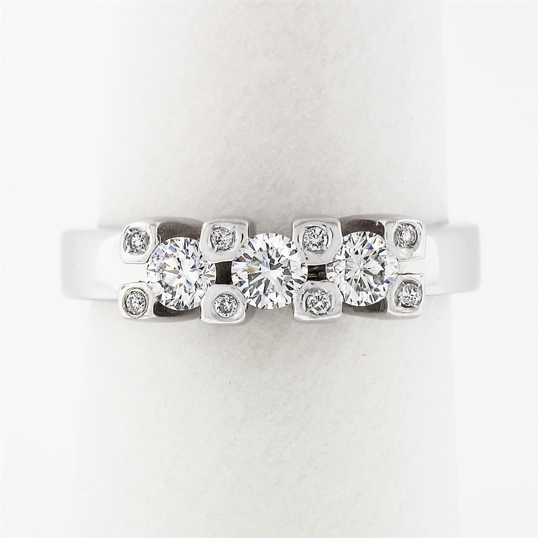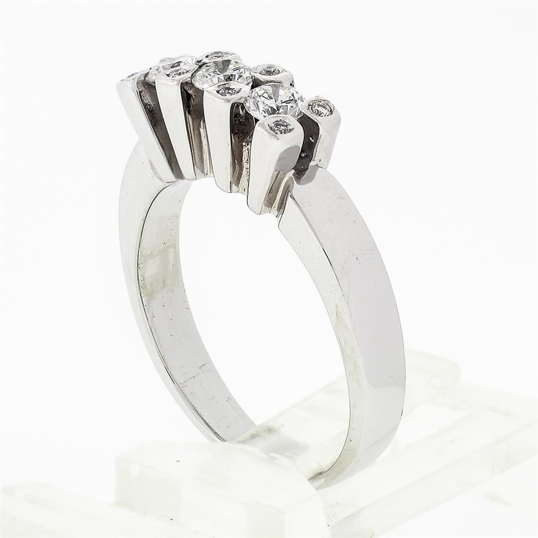 A solid 18k white gold band ring, with 11 round brilliant cut natural diamonds (G/H -VS1/VS2 ; 0.58ctw). The ring is size 7.5, weighs a total of 7.03 grams, and measures 5.20mm wide.