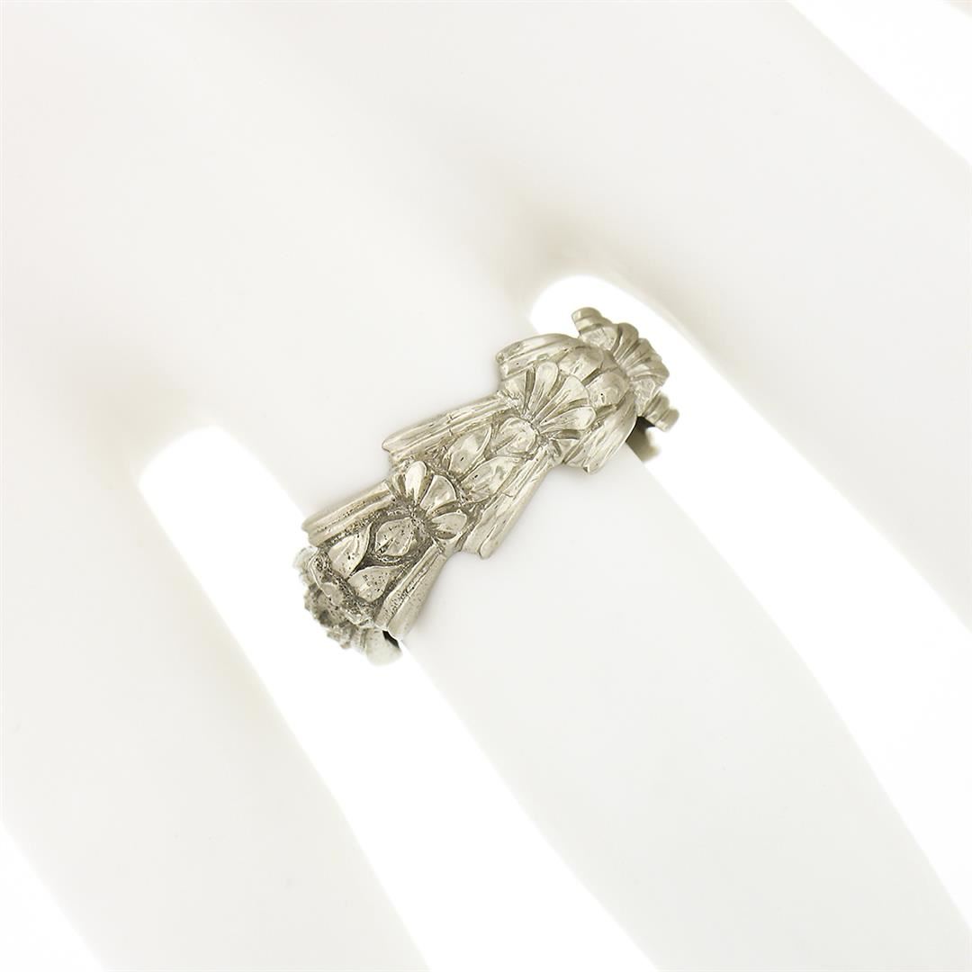 A vintage solid 14k white gold wavy band ring. The ring is size 5.0, weighs a total of 4.61 grams, and measures 7.0mm wide.