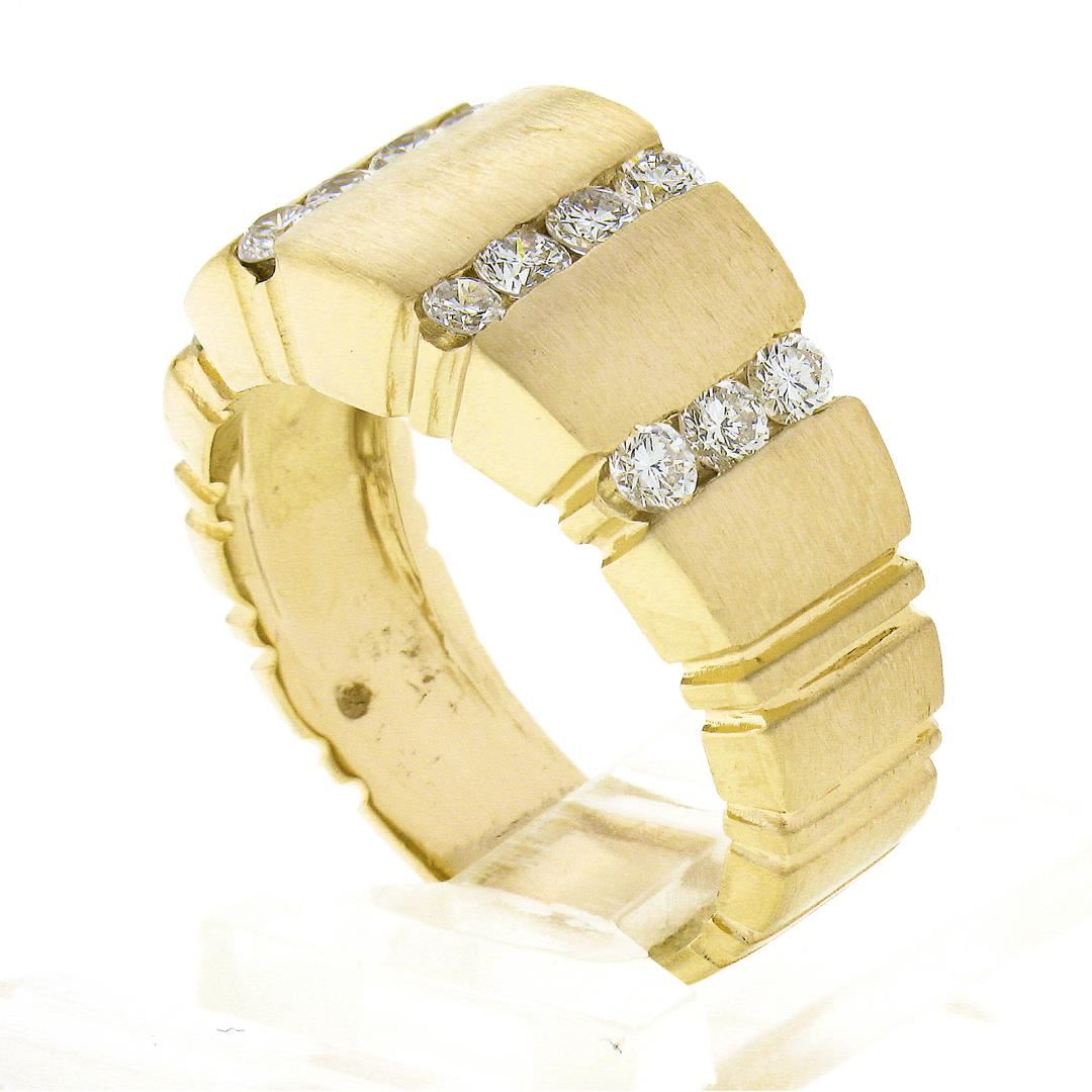 Unisex 14K Gold 0.60 ctw Round Diamond Grooved Channel Brushed Wide Band Ring