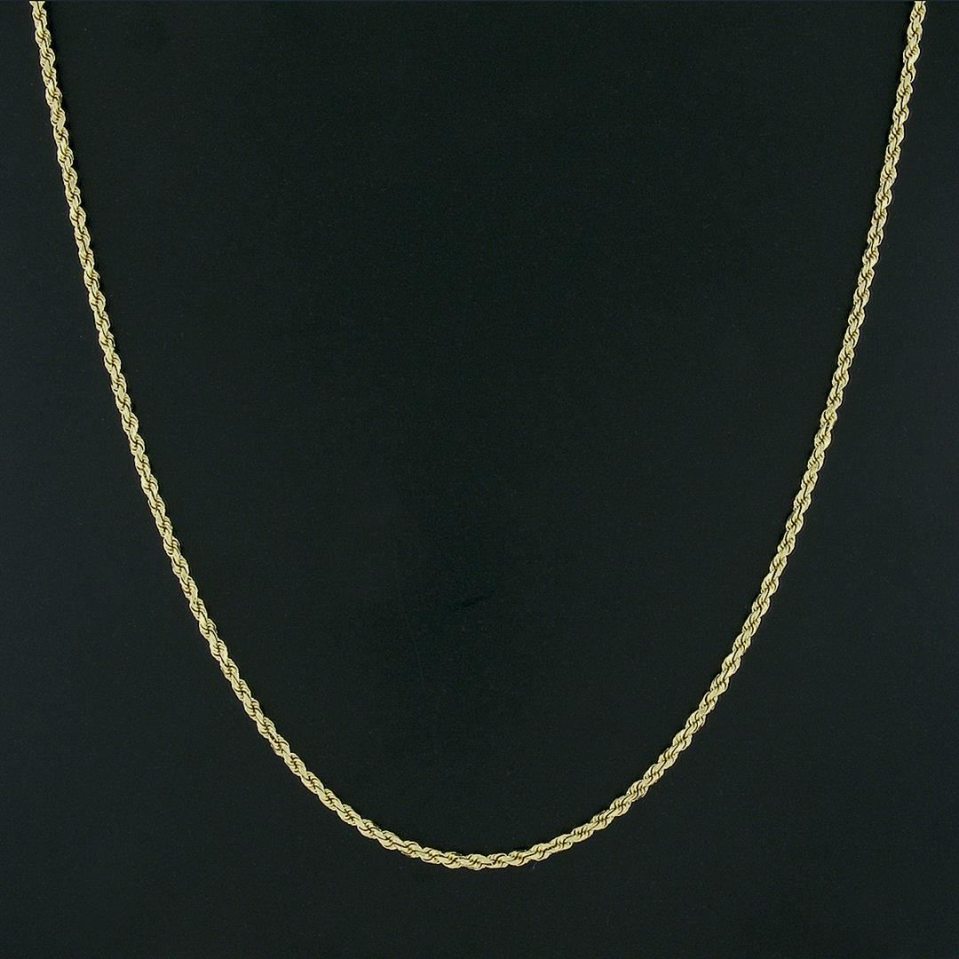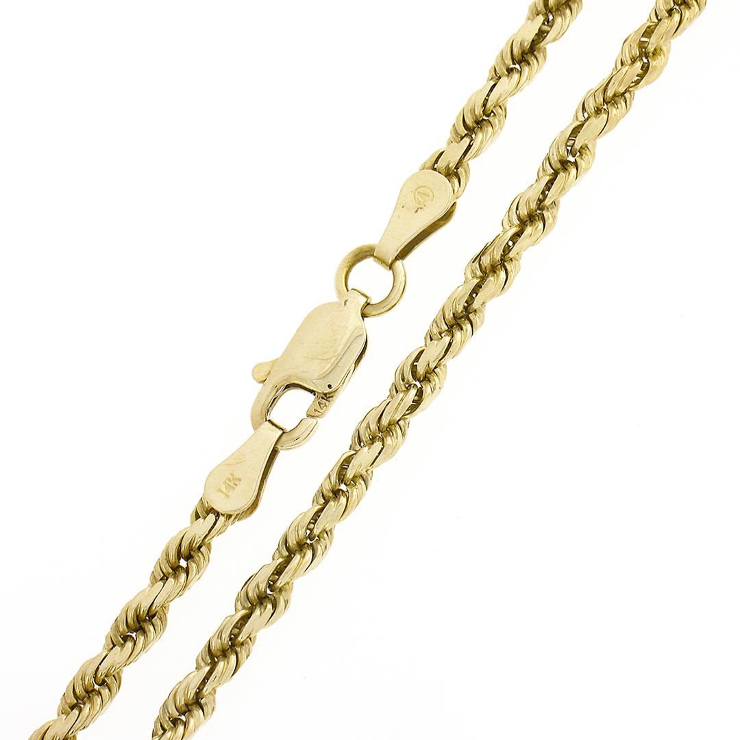 A solid 14k yellow gold rope link chain. It weighs a total of 13.97 grams, measures 2.8mm wide, and measures 20.5 inches in length.