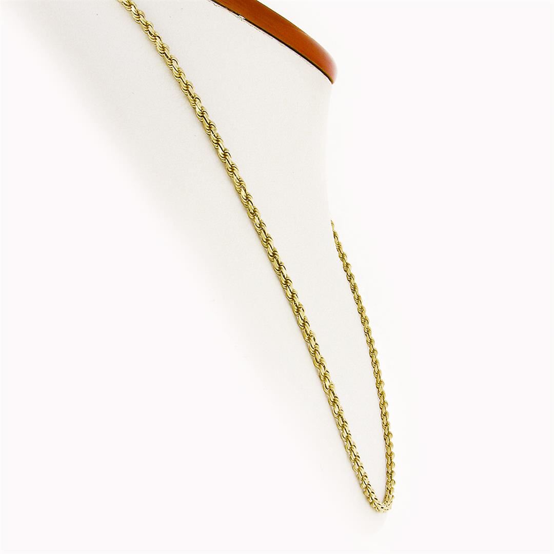 A solid 14k yellow gold rope link chain. It weighs a total of 13.97 grams, measures 2.8mm wide, and measures 20.5 inches in length.