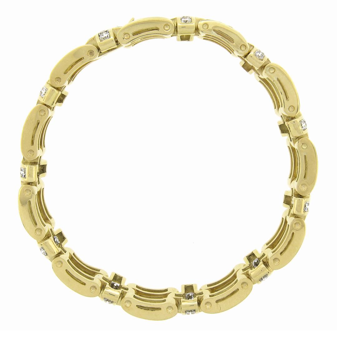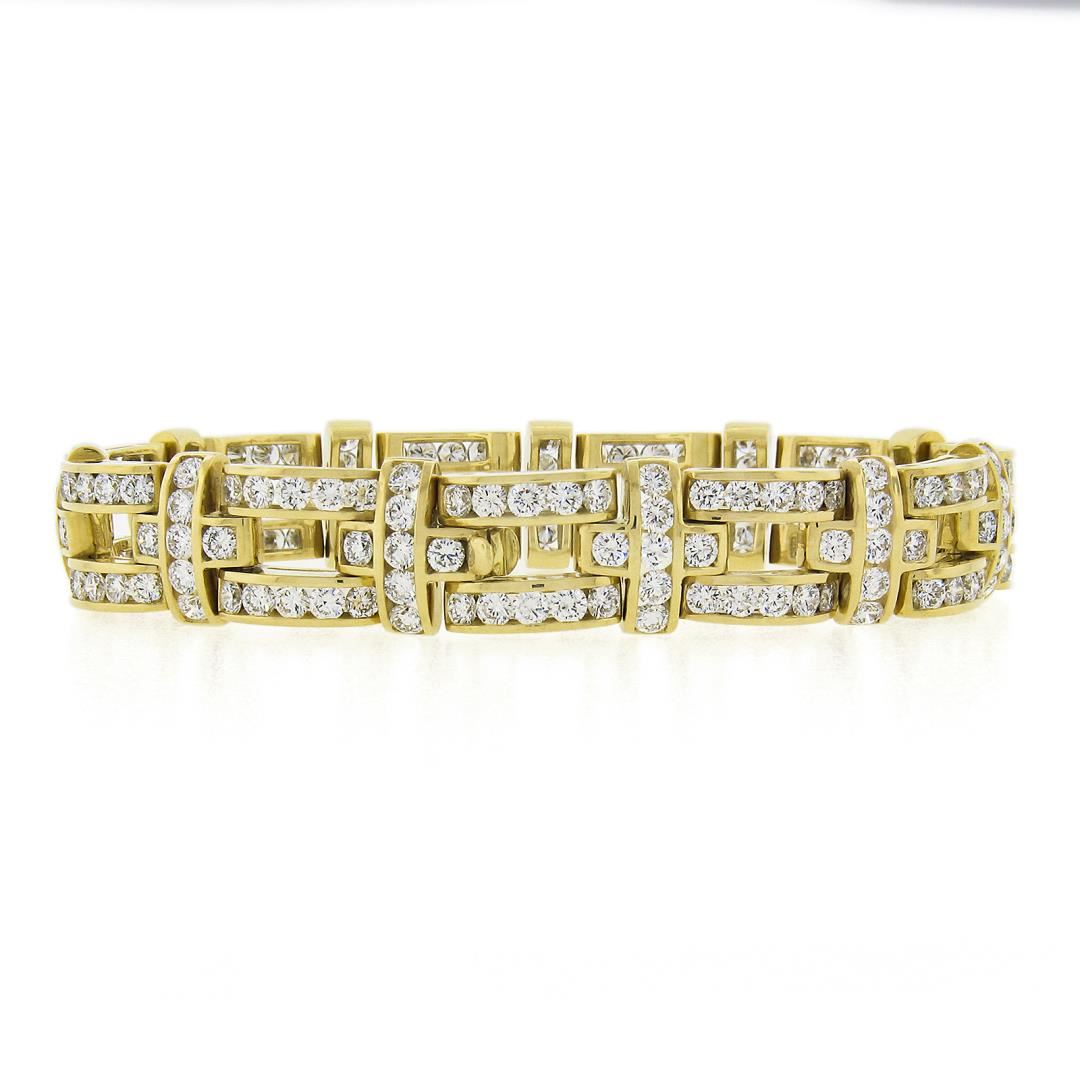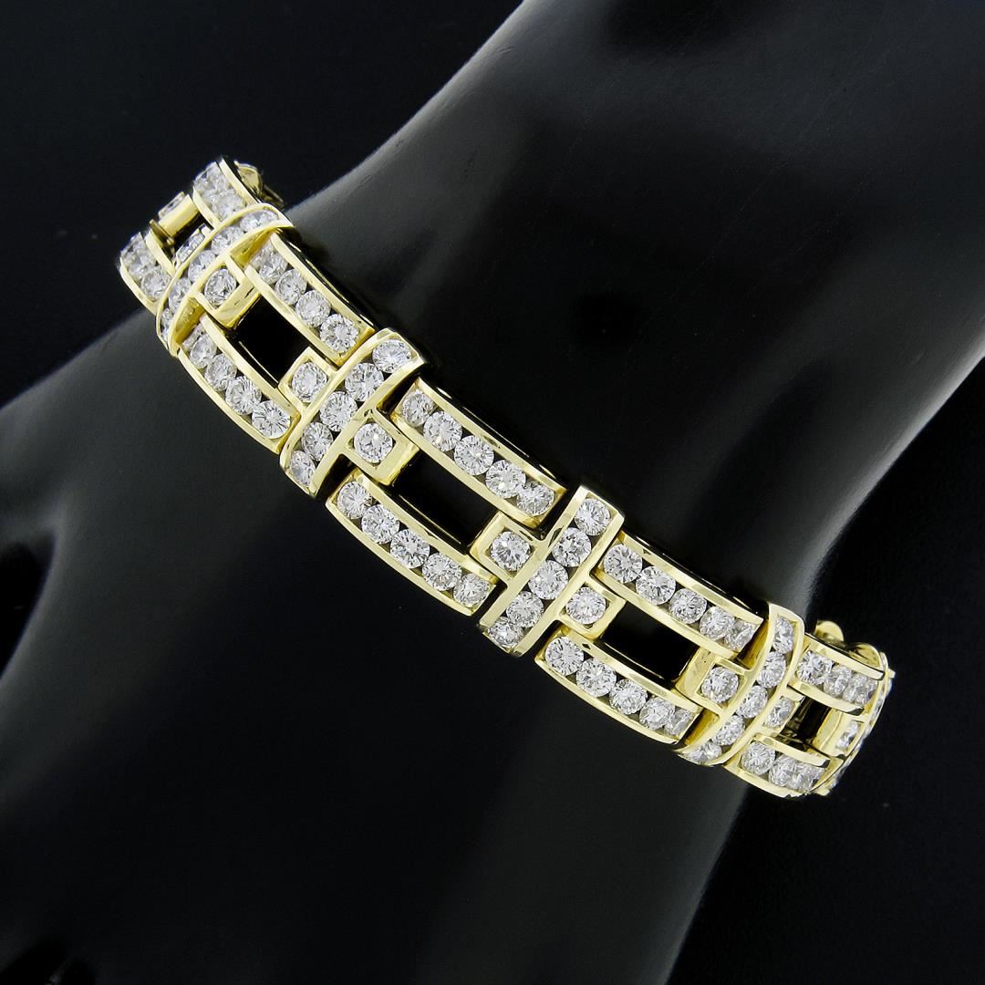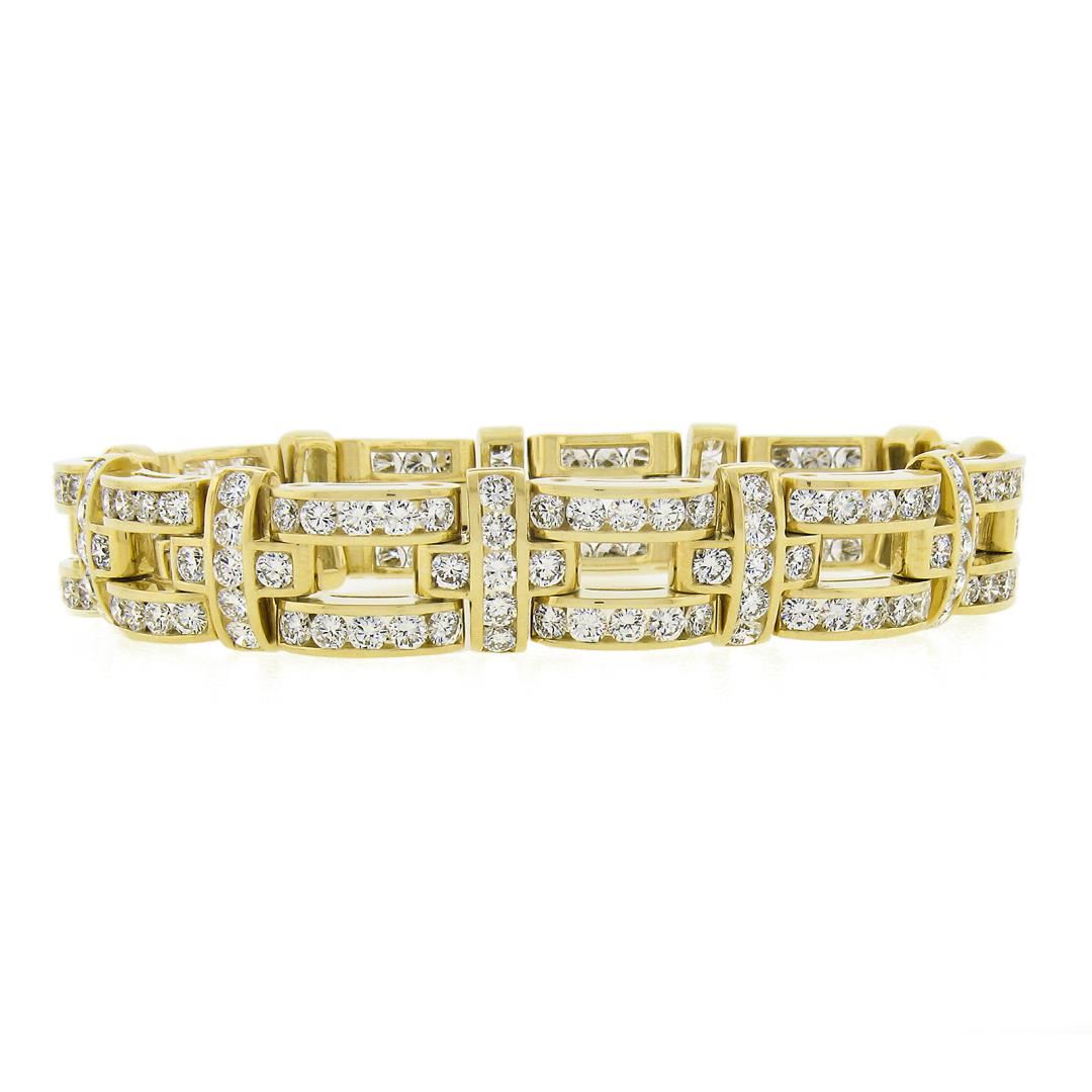 A solid 18k yellowgold wide bracelet, covered with 187 round cut natural diamonds (G/H - VS1/VS2 ; 14.9ctw). It weighs a total of 58.8 grams, measures 13.5mm wide, and measures 7.5 inches in length.