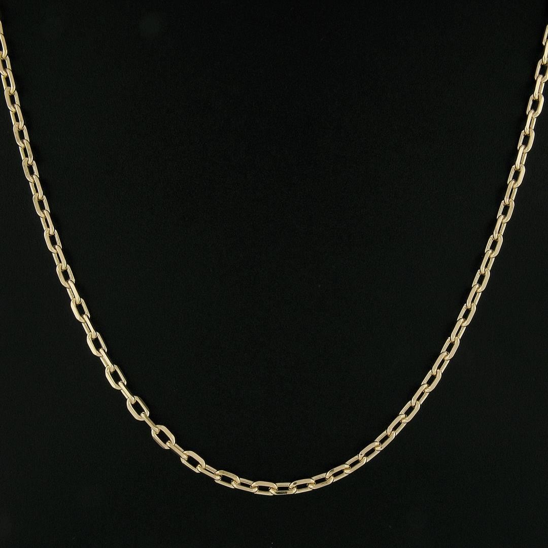 A solid 18k yellow gold open link chain necklace. It weighs a total of 32.93 grams, measures 1.4mm wide, and measures 18.75 inches in length.