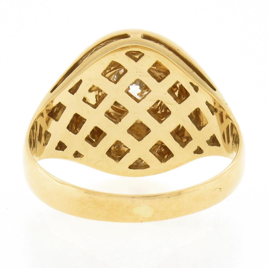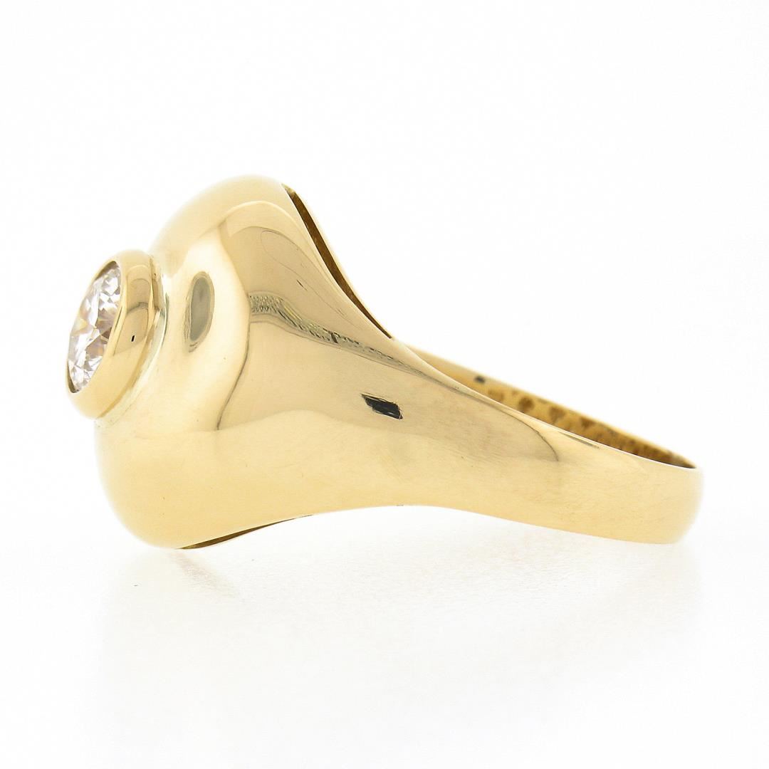 A solid 18k yellow gold dome solitaire band ring, with 1 round brilliant cut natural diamond (G - SI1 ; 0.73ct). The ring is size 9.0, weighs a total of 7.0 grams, and measures 15.8mm wide.