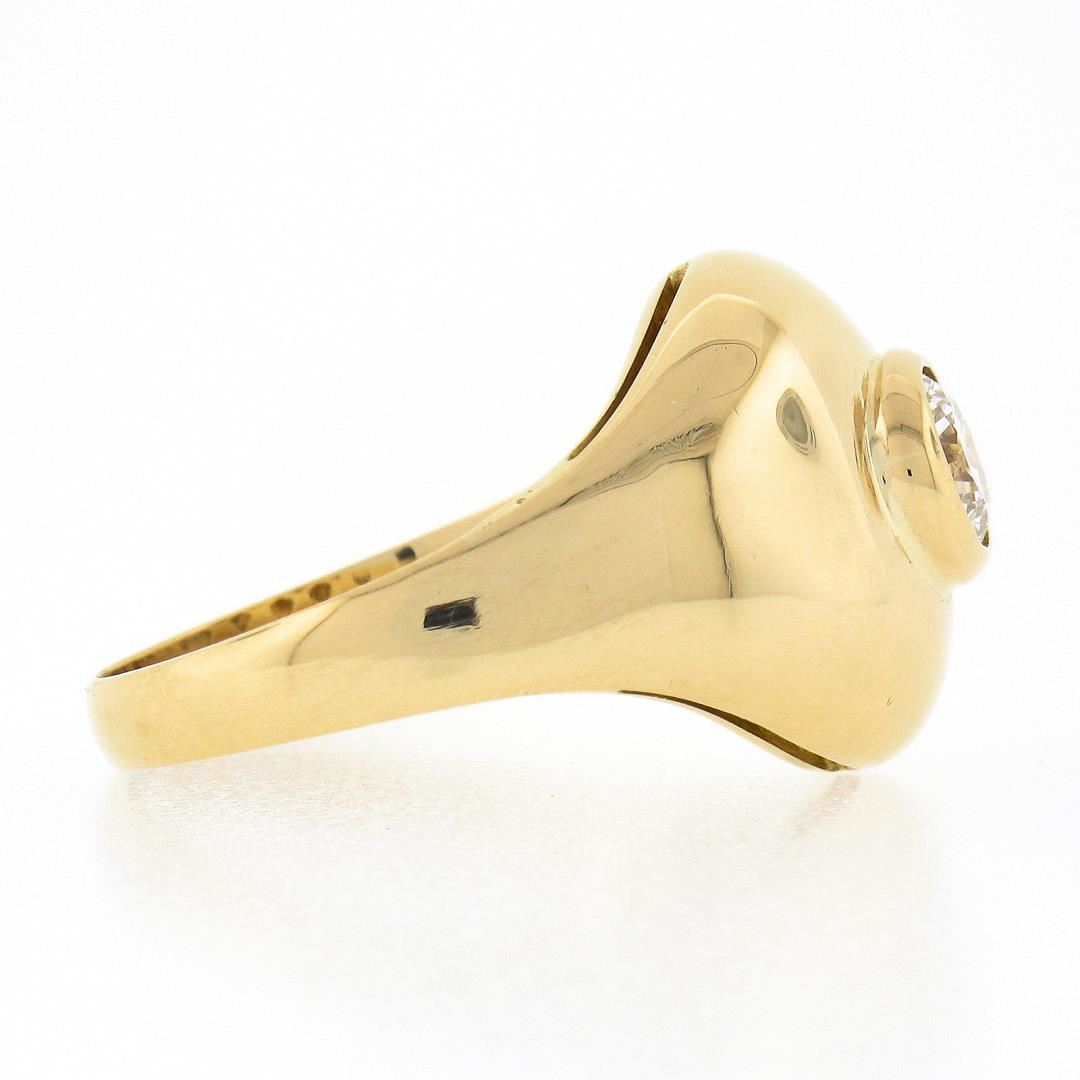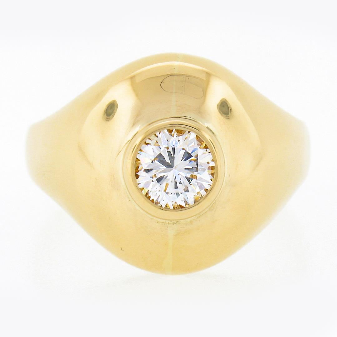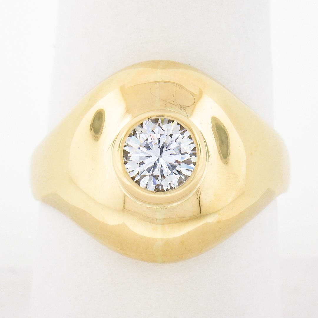 A solid 18k yellow gold dome solitaire band ring, with 1 round brilliant cut natural diamond (G - SI1 ; 0.73ct). The ring is size 9.0, weighs a total of 7.0 grams, and measures 15.8mm wide.