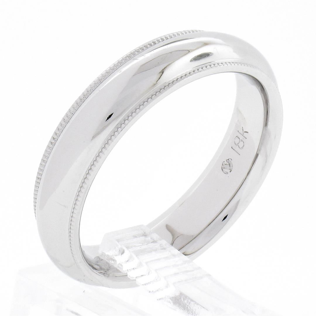 A solid 18k white gold band ring. The ring is size 8.0, weighs a total of 7.76 grams, and measures 5mm wide.