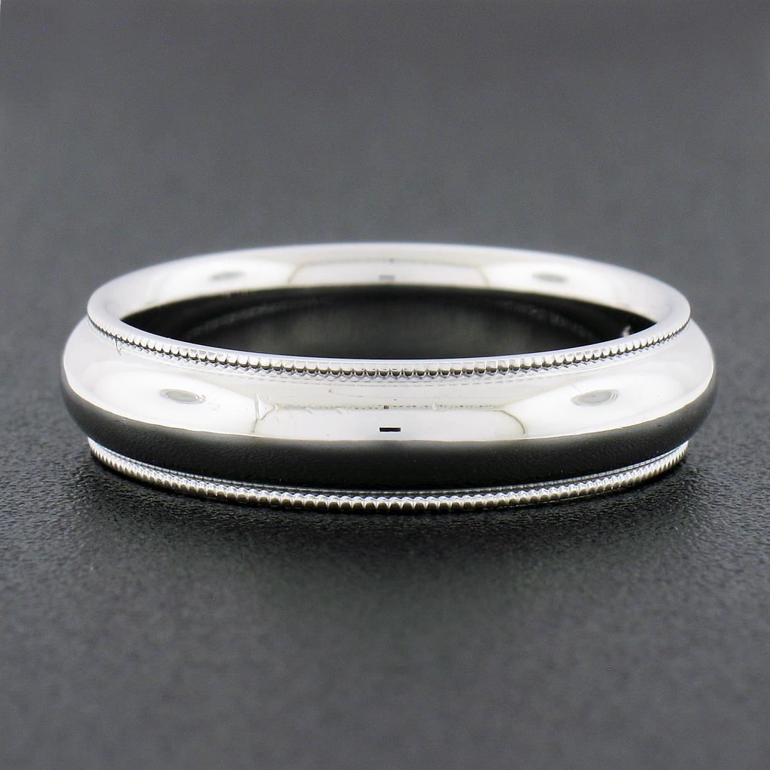 A solid 18k white gold band ring. The ring is size 8.0, weighs a total of 7.76 grams, and measures 5mm wide.
