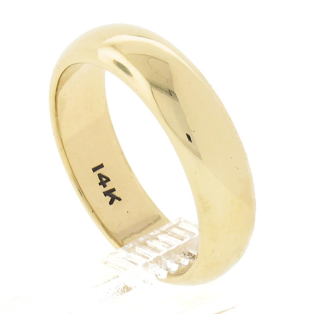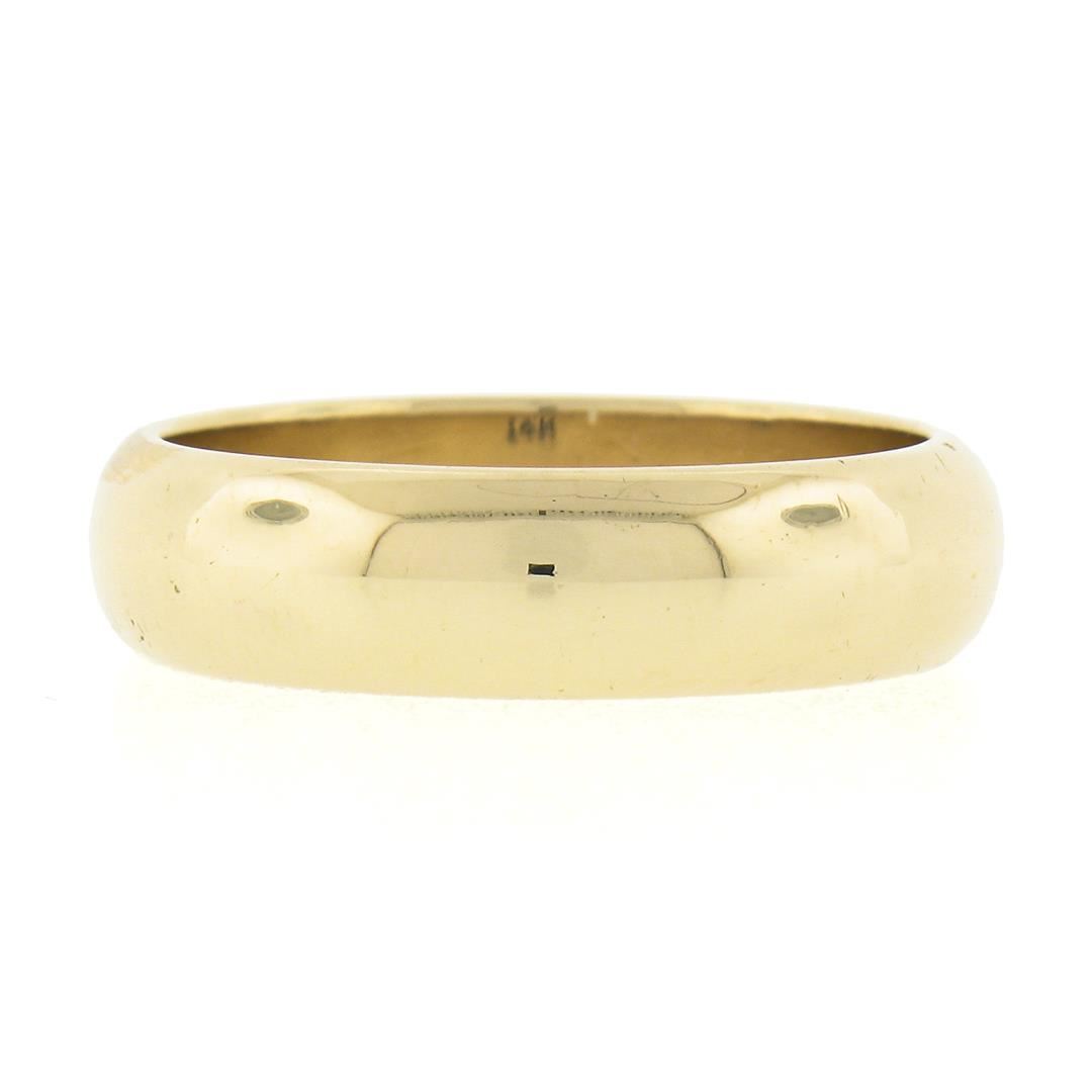 A solid 14k yellow gold band ring. The ring is size 6.5, weighs a total of 5.44 grams, and measures 5mm wide.