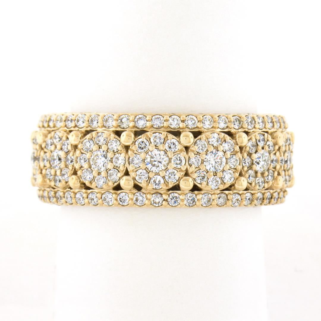 A solid 10k yellow gold cluster band ring, with 159 round brilliant cut natural diamonds (I/J - SI1/SI2 ; 2ctw). The ring is size 10.0, weighs a total of 8.34 grams, and measures 9mm wide.