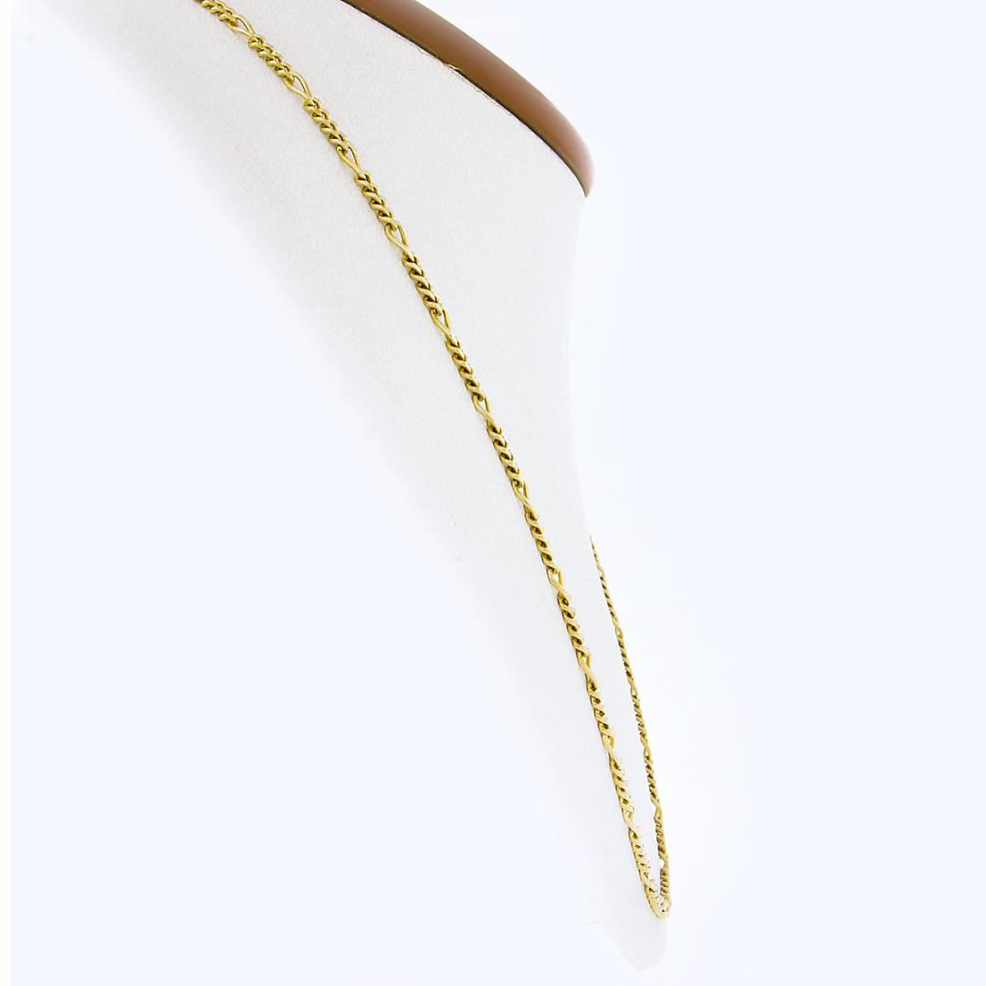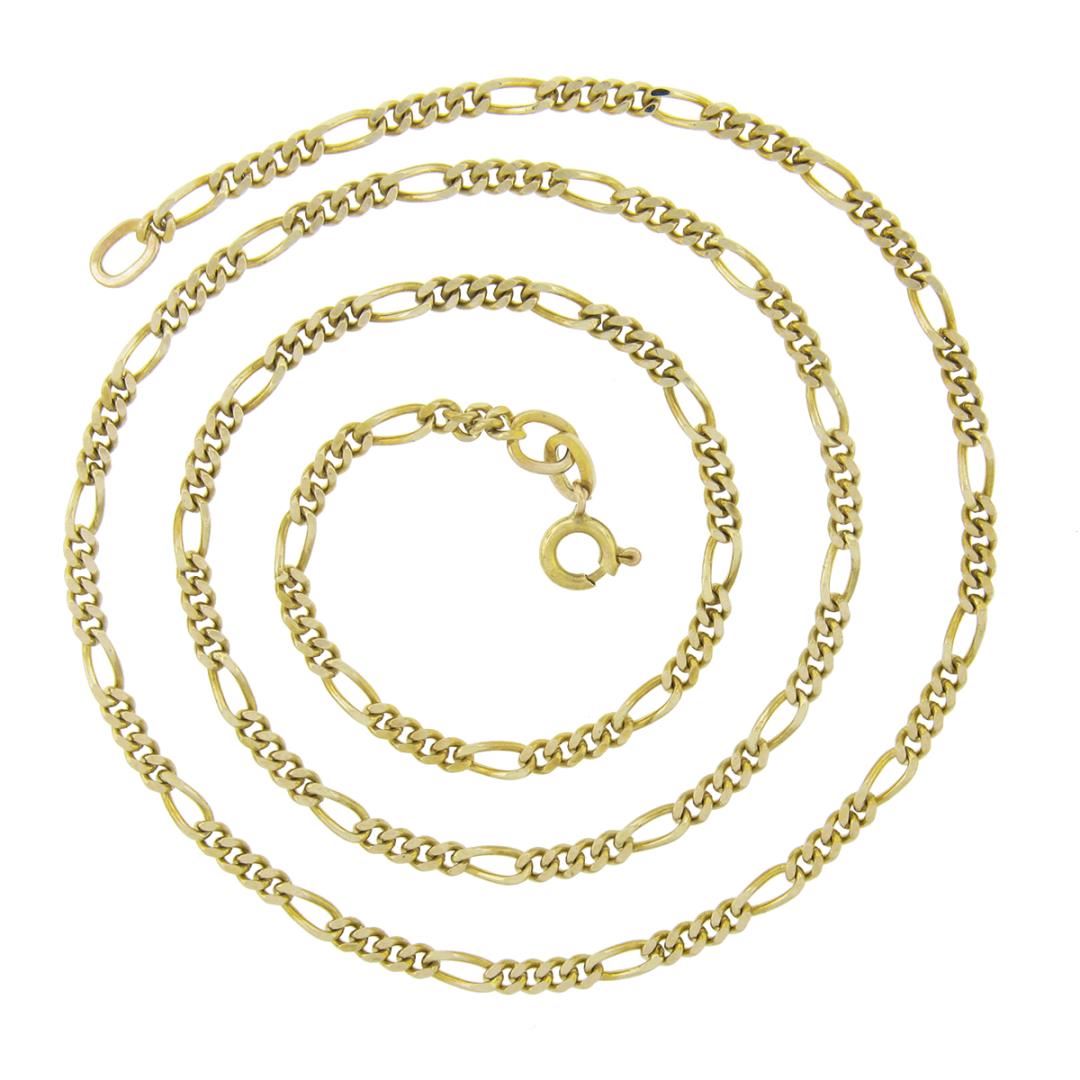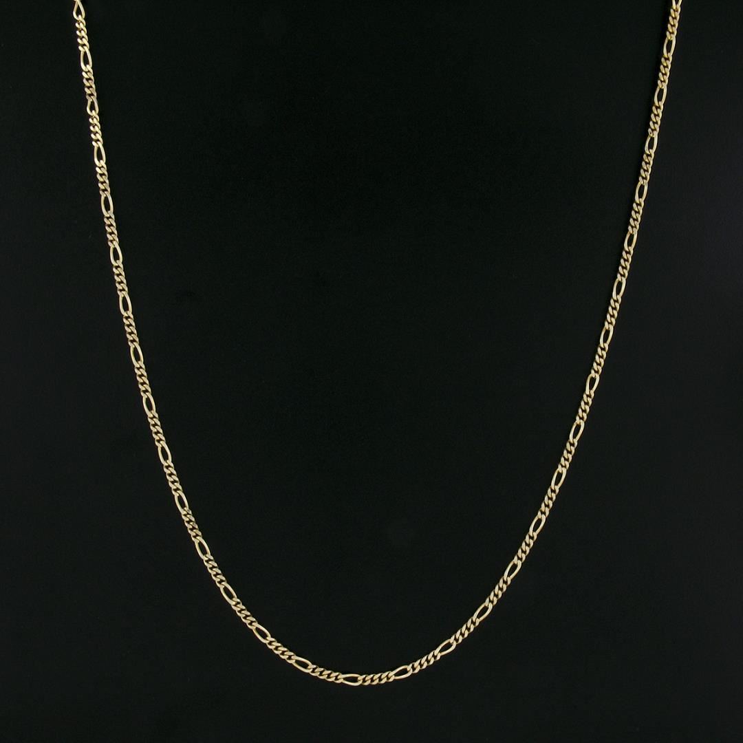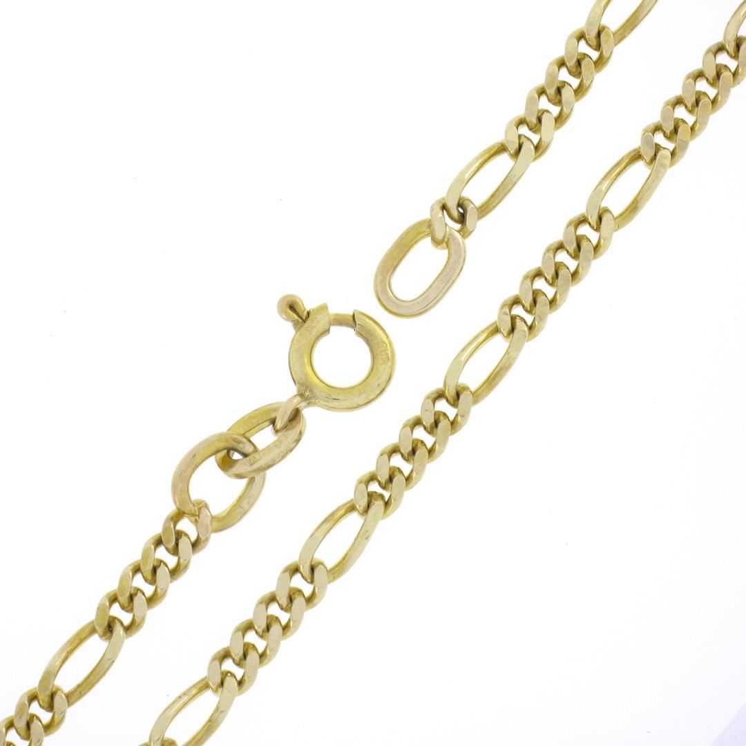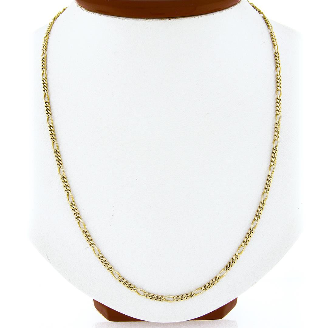 A solid 14k yellow gold figaro link necklace. It weighs a total of 10.88 grams, measures 2.8mm wide, and measures 20 inches in length.