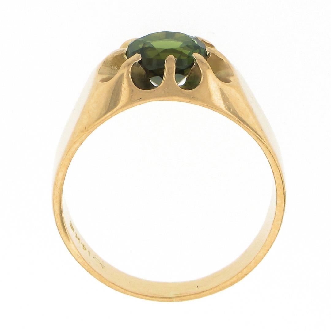 A vintage solid 14k yellow gold solitaire ring, with 1 round brilliant cut natural tourmaline (6.15mm / 0.85ct). The ring is size 5.5, weighs a total of 4.46 grams, and measures 8.7mm wide.
