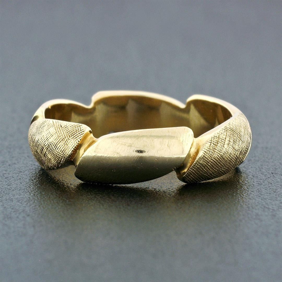 A vintage solid 14k yelliw gold grooved polished and florentine band ring. The ring is size 10, weighs a total of 6.30 grams, and measures 6.0mm wide.