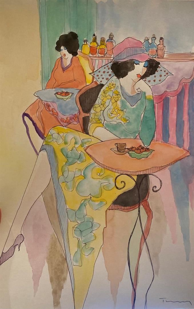 Itzchak Tarkay "UNTITLED 59" Hand Signed Mixed Media Watercolor on Paper Dimensions: 18 x 12 Inches
