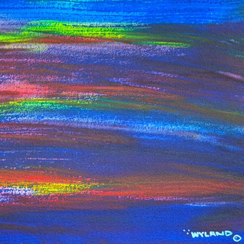 "Untitled Abstract" is an original watercolor painting on paper by Wyland, hand signed by the artist. This piece comes custom framed. Includes Letter of Authenticity. Measures approx. 34" x 48" (frame), 26" x 40" (image). This item requires special handling and may have a longer than usual turnaround.