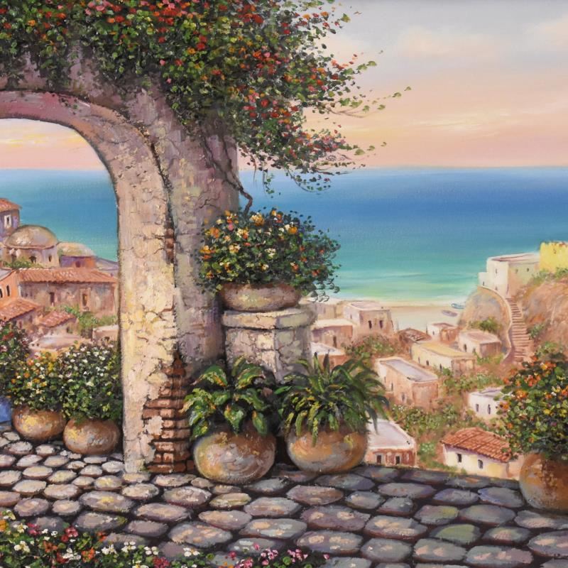 Untitled By Garcia Original. This is an original painting on canvas by Paco Garcia, hand signed by the artist. Includes Letter of Authenticity. Measures approx. 30.5" x 27" (frame), 23.5" x 19.5" (image). There is minor wear on the corners and edges of the frame.