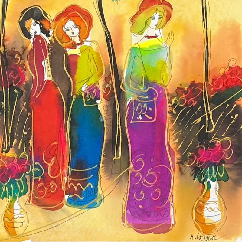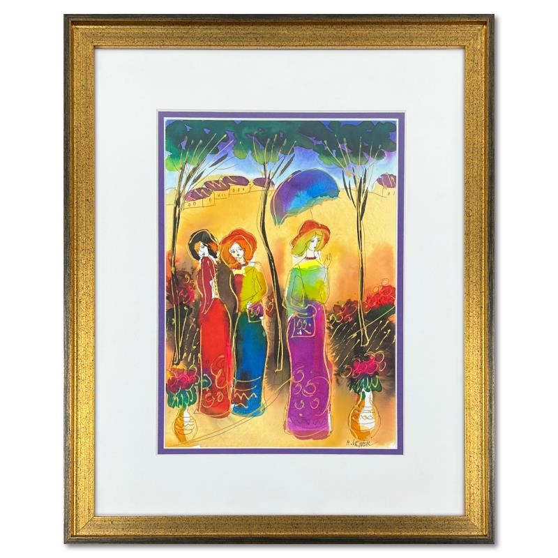 Untitled By Leider Original. This is an original mixed media watercolor painting on paper by Moshe Leider, hand signed by the artist. This piece comes custom framed and includes a Letter of Authenticity. Measures approximately 18" x 14.5" (frame), 11" x 8" (image).