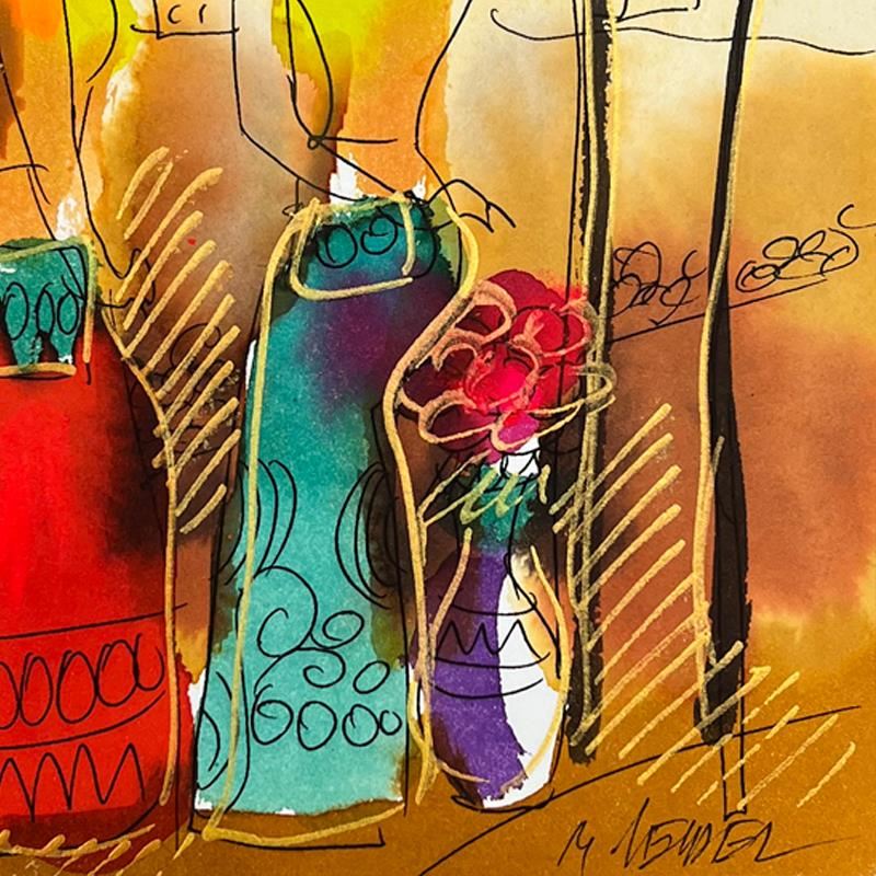 Untitled By Leider Original. This is an original mixed media watercolor painting on paper by Moshe Leider. Hand signed by the artist, this piece comes custom framed and includes a Letter of Authenticity. Measures approximately 15" x 13.5" (frame), 8" x 6.5" (image).