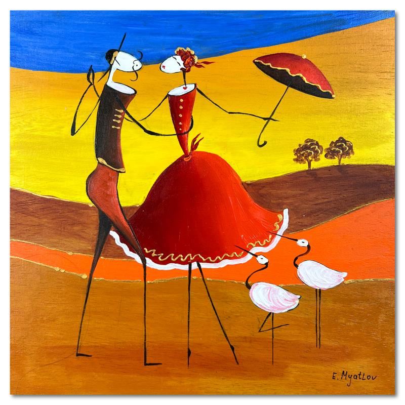 Untitled By Myatlov Original. This is an original painting oil on wood panel by Ester Myatlov. Hand signed by the artist, this piece comes with a letter of authenticity. Measures approximately 10" x 10" (image).