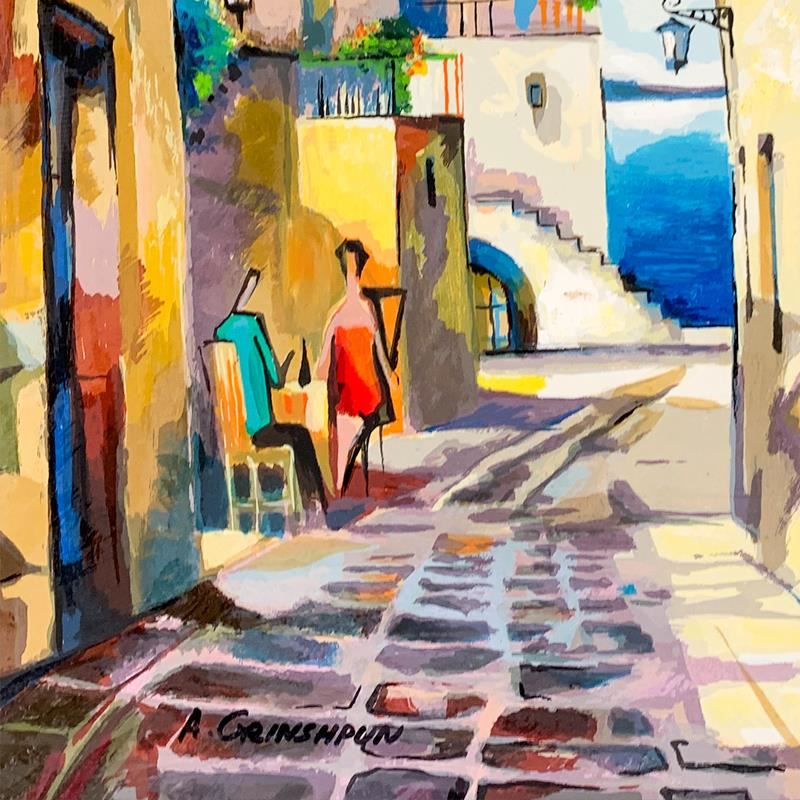 This is a hand embellished limited edition serigraph on board by Alex Grinshpun. It is numbered and hand signed and includes a letter of authenticity. Measures approximately 16" x 12" (image). ** Please note: There are elements of art board stuck to the white paint embellishing due to them being stacked without protection between pieces. **