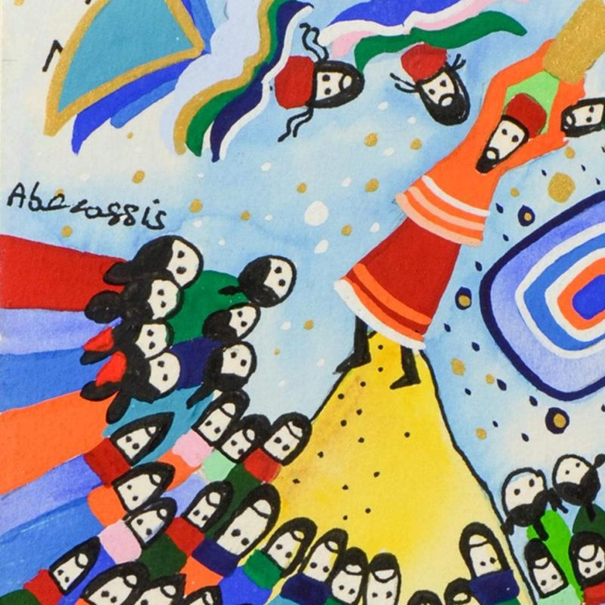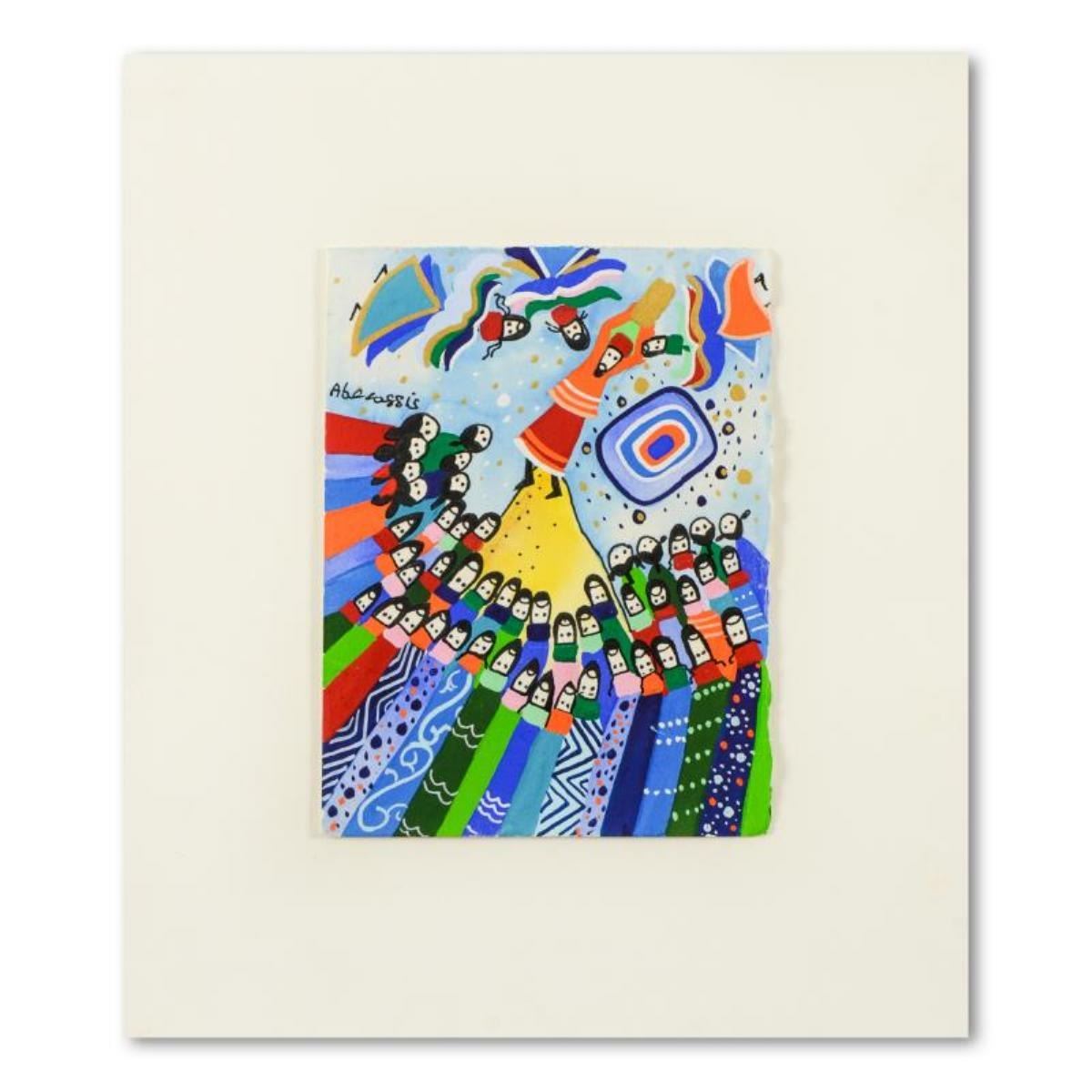 Untitled by Abecassis Original. This is an original acrylic painting on paper by Raphael Abecassis, hand signed by the artist. Includes Letter of Authenticity. This piece is mounted to a paper backing. Measures approx. 11.5" x 13.5" (paper backing), 6" x 8" (image). There are minor smudges on the paper backing that may be concealed when framed.