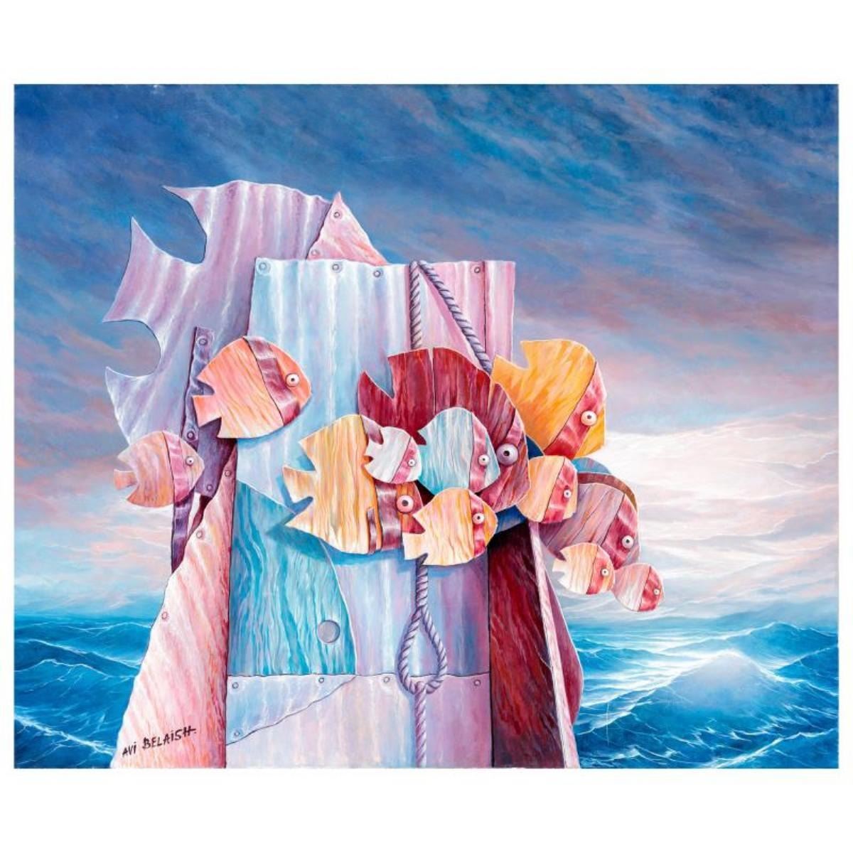 Avi Belaish, Original Acrylic Painting on Canvas (40" x 48"), Hand Signed with Letter Authenticity.. This is an original acrylic painting on stretched canvas by Avi Belaish, hand signed by the artist. Includes Letter of Authenticity. Measures approx. 40" x 48" (image). ** Please note: there are faint scuffs along the top border of the image, as well as minor wear on the corners and edges. **