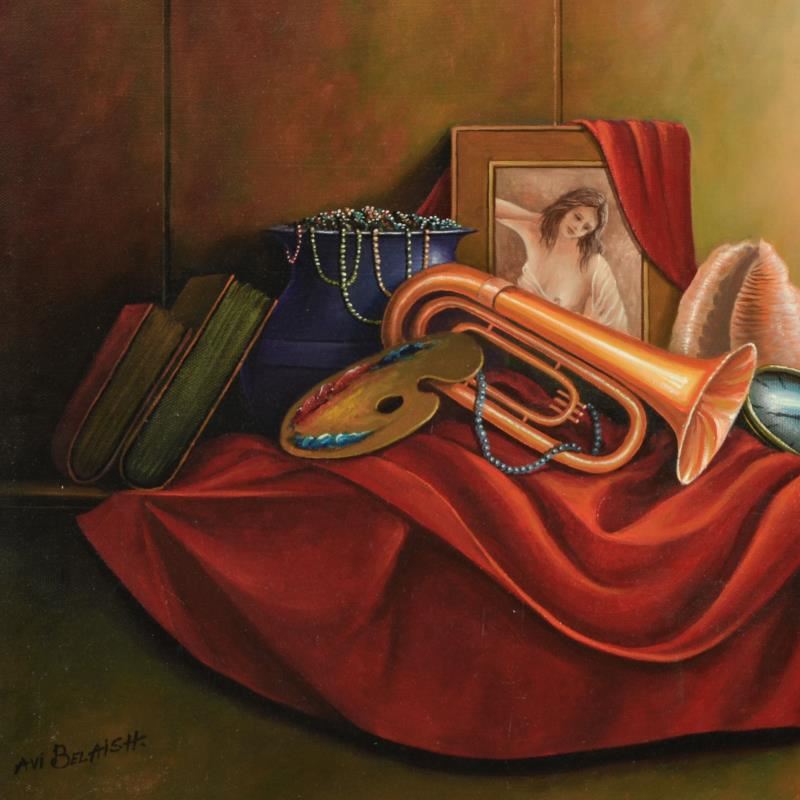 This is an original acrylic painting on stretched canvas by Avi Belaish. This piece is not signed. Includes Letter of Authenticity. Measures approx. 18" x 22" (image). There is minor wear on the corners and edges that may be concealed when framed.