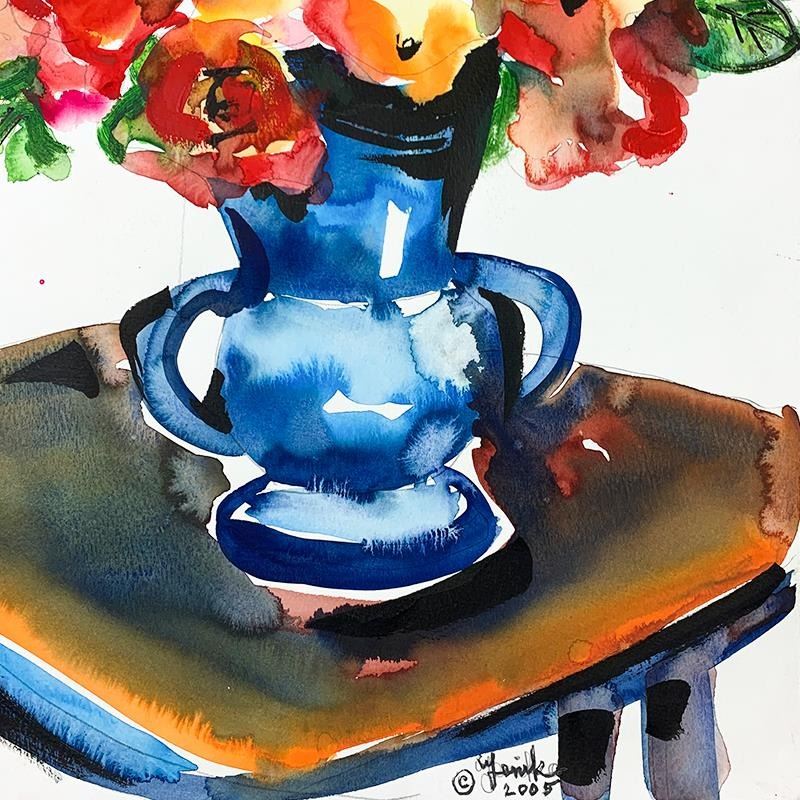 This is an original acrylic painting on paper by Jenik Cook. Hand signed by the artist, it includes Letter of Authenticity. This piece comes from the artist's personal collection. Measures approximately 29" x 23" (framed), 24" x 18" (image). This item requires special handling and may have a longer than usual turnaround.