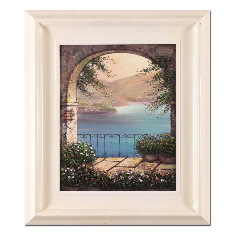 This is an original painting on canvas by Paco Garcia, hand signed by the artist. Includes Letter of Authenticity. Measures approx. 25" x 29" (frame), 15.5" x 19.5" (image). There is minor wear on the corners and edges of the frame.
