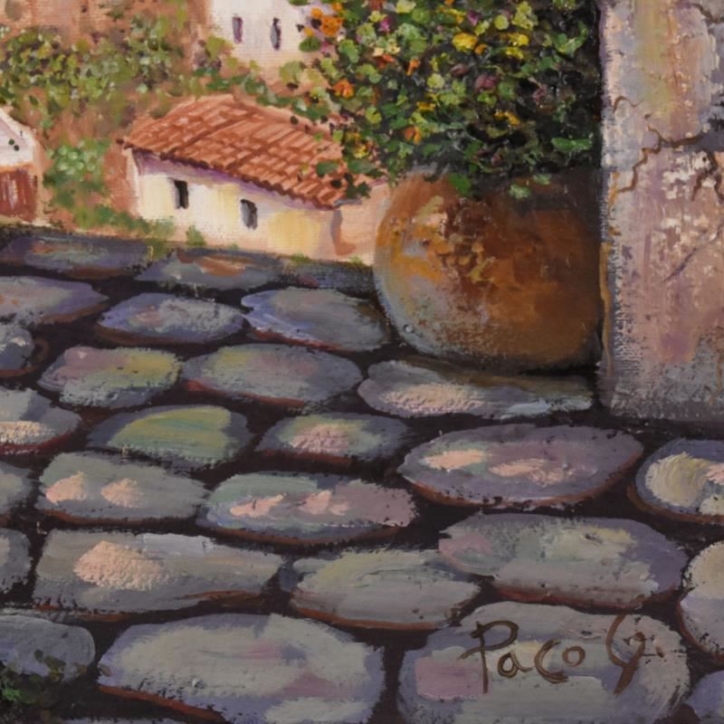 This is an original painting on canvas by Paco Garcia, hand signed by the artist. Includes Letter of Authenticity. Measures approx. 30.5" x 27" (frame), 23.5" x 19.5" (image). There is minor wear on the corners and edges of the frame.