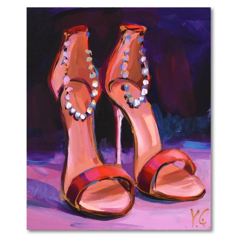 This is an original acrylic painting on board by Yasna Godovanic, hand signed by the artist. Includes Letter of Authenticity. Measures approx. 6" x 7" (image).