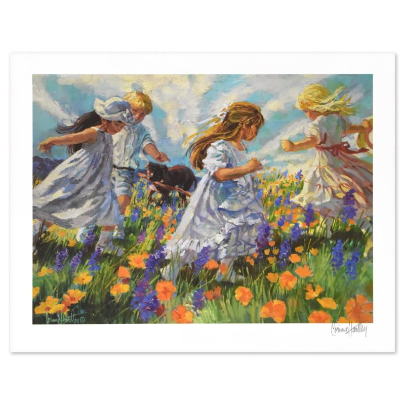 This is a limited edition lithograph on paper by Corinne Hartley, numbered and hand signed by the artist. Includes Letter of Authenticity. Measures approx. 17" x 13" (border), 15" x 11" (image). ** Please note: due to the age of this piece there may be imperfections in the border area (scuffs or creased corners). **