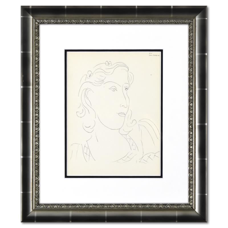 This is a lithograph reproduction by Pierre Henri Matisse (1869-1954), dated 1942 and bearing the plate signature of the artist. This piece comes custom framed. Includes Letter of Authenticity. Measures approx. 18" x 21.5"(frame), 9" x 12" (image).