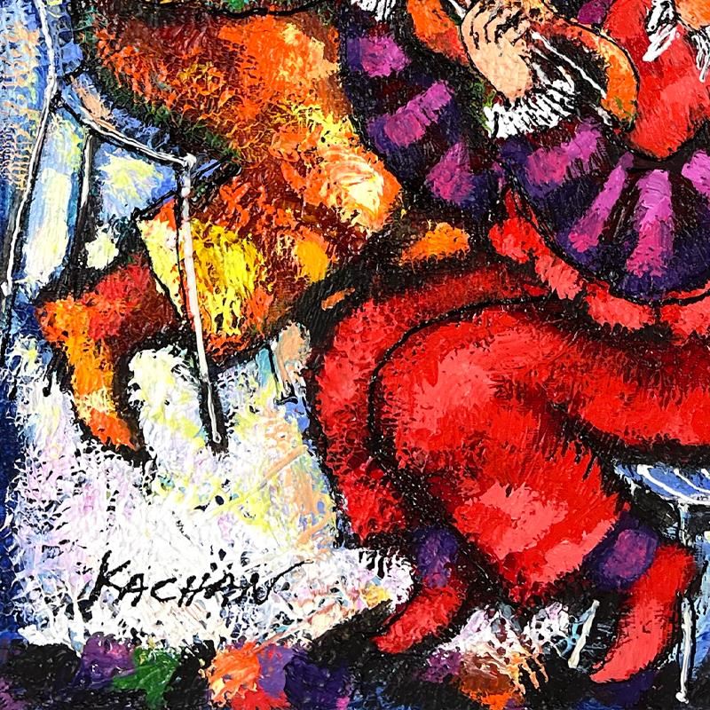 This is an original painting acrylic on canvas by Michael Kachan. Hand signed by the artist, this piece comes with a letter of authenticity. Measures approximately 30" x 16" (image).