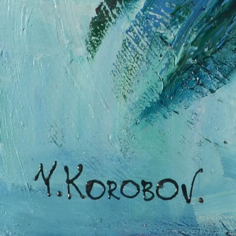 This is an original acrylic painting on canvas by Yana Korobov, hand signed by the artist. Includes Letter of Authenticity. Measures approx. 30" x 30" (image).