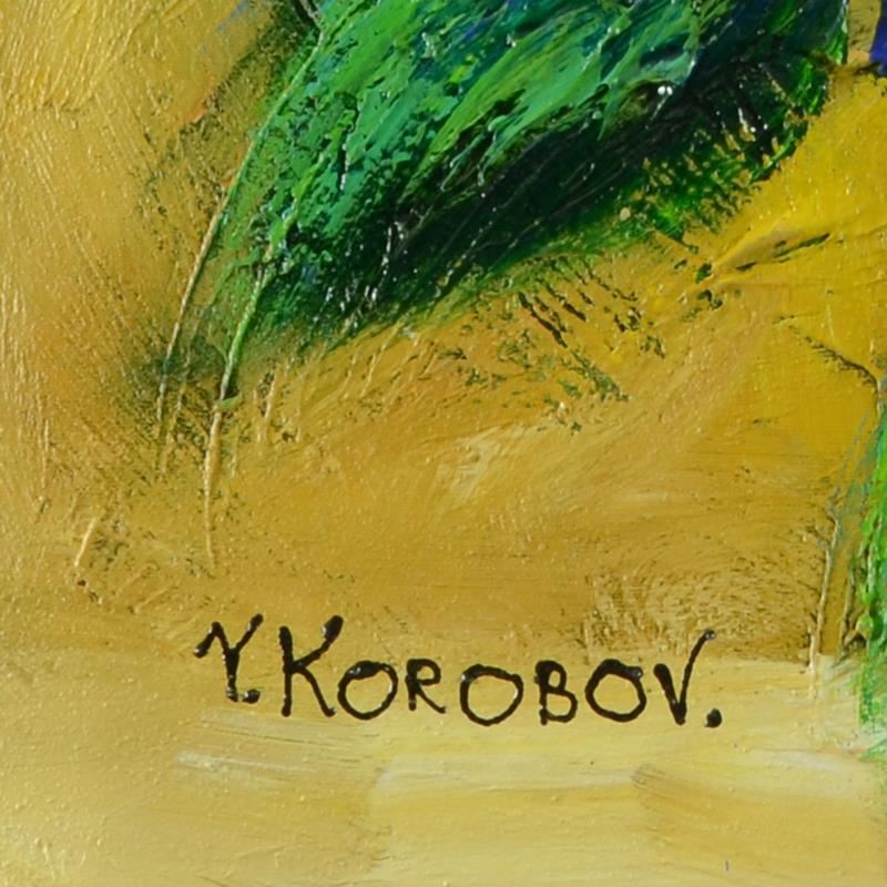 This is an original acrylic painting on canvas by Yana Korobov, hand signed by the artist. Includes Letter of Authenticity. Measures approx. 30" x 30" (image).