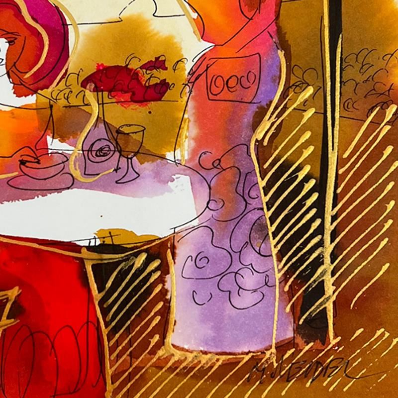This is an original mixed media watercolor painting on paper by Moshe Leider. Hand signed by the artist, this piece comes custom framed and includes a Letter of Authenticity. Measures approximately 15" x 13.5" (frame), 8" x 6.5" (image).