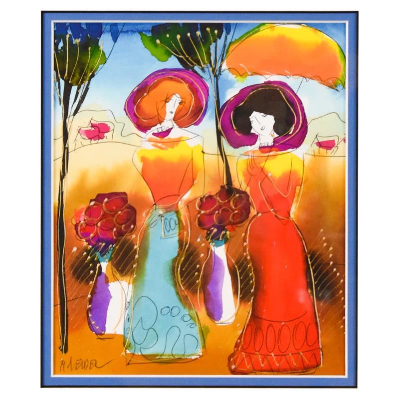 This is an original mixed media watercolor painting on paper by Moshe Leider, hand signed by the artist. This piece comes custom framed. Includes Letter of Authenticity. Measures approx. 15" x 16.5" (frame), 7" x 9" (image).