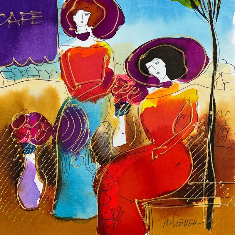 This is an original mixed media watercolor painting on paper by Moshe Leider. Hand signed by the artist, this piece comes custom framed and includes a Letter of Authenticity. Measures approximately 16" x 15" (frame), 9" x 8" (image).