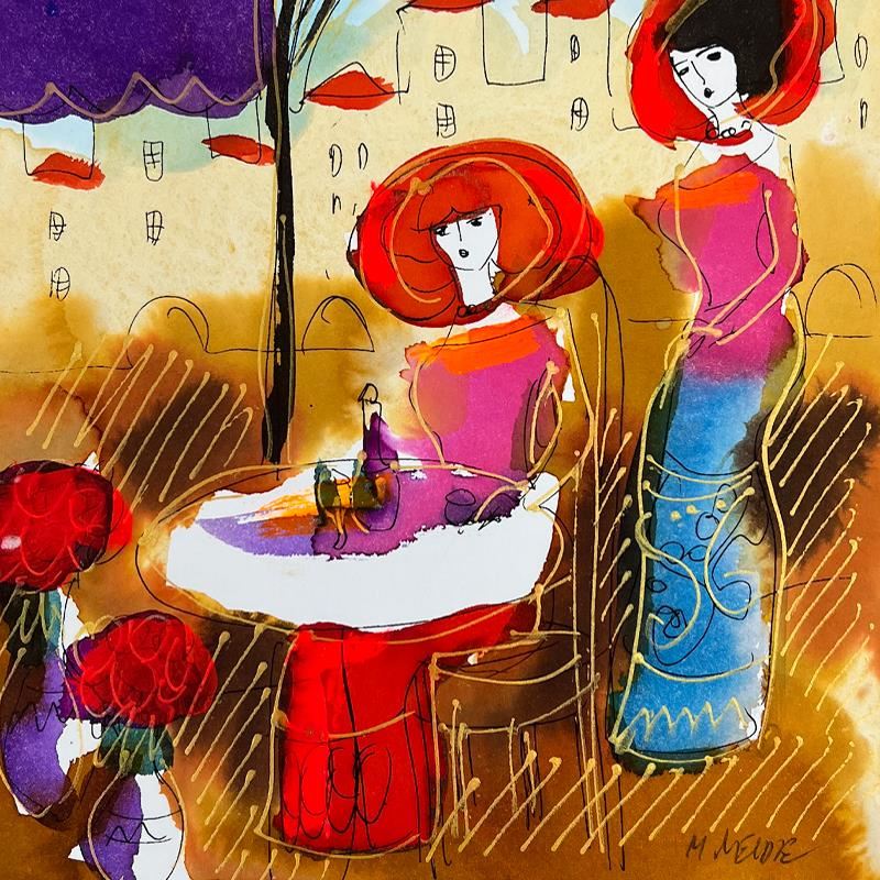 This is an original mixed media watercolor painting on paper by Moshe Leider. Hand signed by the artist, this piece comes custom framed and includes a Letter of Authenticity. Measures approximately 16" x 15" (frame), 9" x 8" (image).